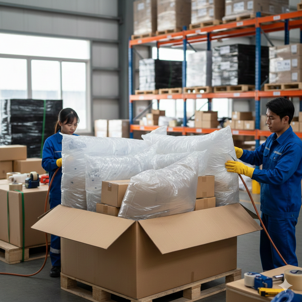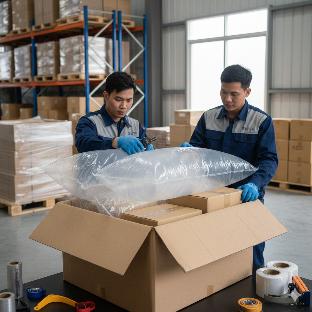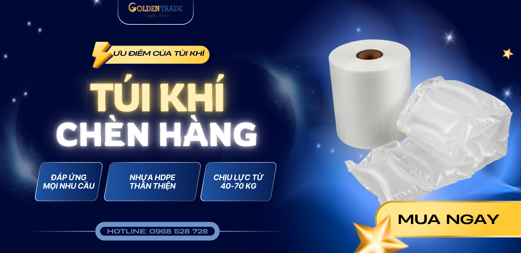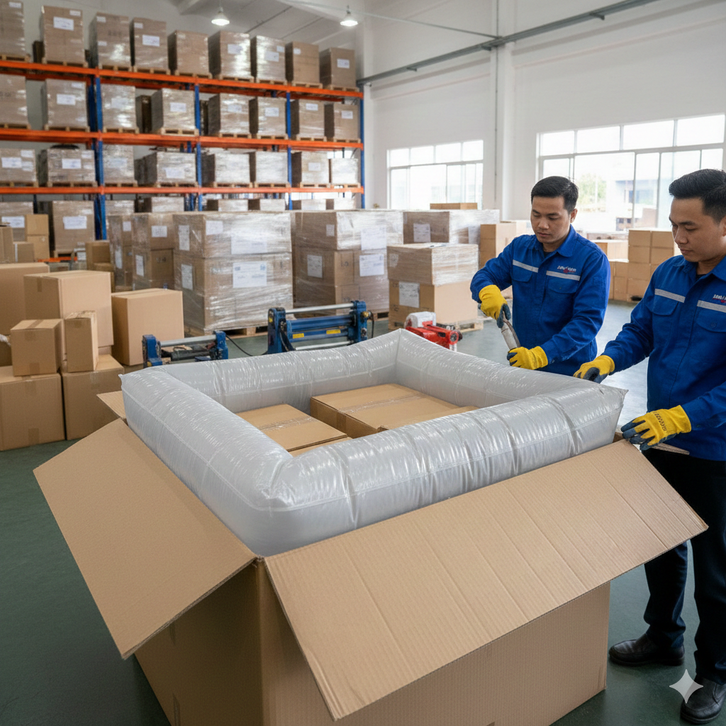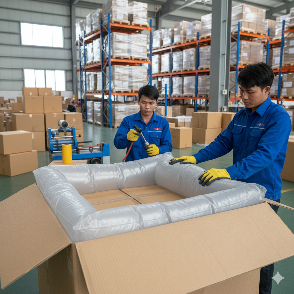 Túi khí chèn hàng Golden Trade đạt tiêu chuẩn AAR (Hiệp hội Đường sắt Hoa Kỳ) và ROHS (Hạn chế Chất độc hại), đảm bảo chất lượng xuất khẩu Úc, Mỹ, EU. An toàn tuyệt đối cho hàng hóa và môi trường.